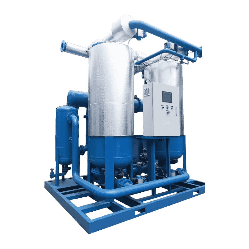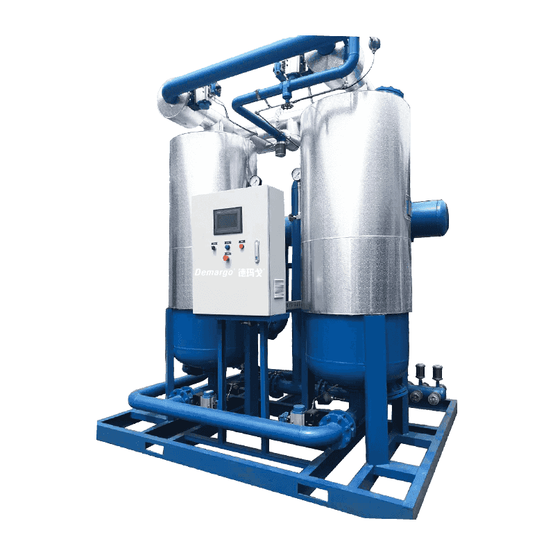 A sűrített hulladékhő-szárító az olajmentes légkompresszor hulladékhőjét használja fel az adszorbens melegítéséhez és regenerálásához; Teljes mértékben kihasználja a hulladékhőt a sűrített levegőrendszerben. Fűtőkészülék használata nélkül a fűtőszárító hatása is elérhető, teljes mértékben megmutatva annak energiatakarékos tulajdonságait. A kész gáz harmatpontja elérheti -40 ℃ -t. Egy önfejlesztett PLC vezérlőt használ, amely stabilabb és megbízhatóbb, mint az egycsipesz-mikroszámputó. A vezérlőszelep egy pillangószelepet használ, hogy több mint egymillió alkalommal biztosítsa a problémamentes váltást. Az Advanced Diverter kialakítása lehetővé teszi a sűrített levegő számára, hogy egyenletesen érintkezzen az adszorbenssel, kiküszöbölve a csatornaáramlás jelenségét.